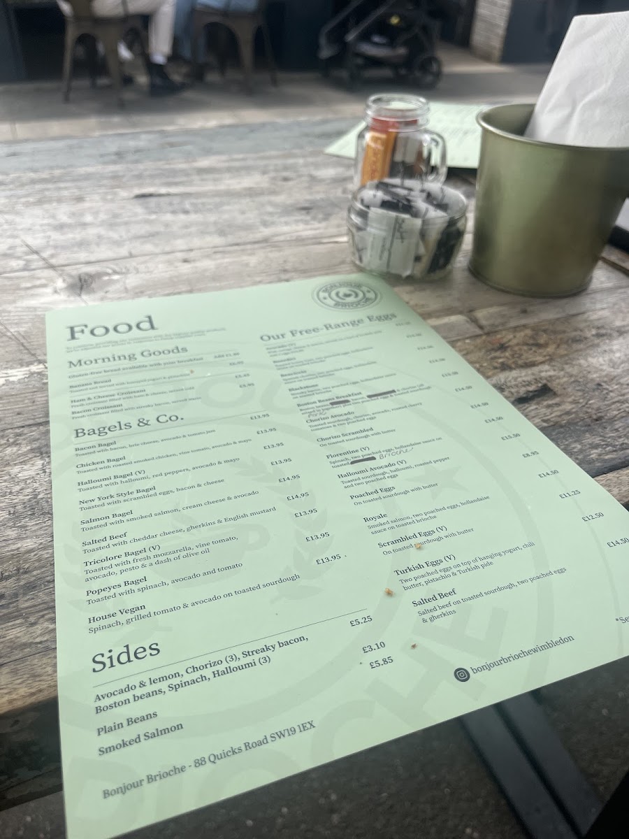 The menu at Bonjour Brioche offers a delightful range of breakfast and brunch options, perfect for a relaxed morning. Their Bagels & Co section features classics like the Bacon Bagel, Chicken Bagel, and Salmon Bagel, each brimming with fresh ingredients. For something a bit different, try the Halloumi Bagel or the New York Style Bagel, both offering a unique twist. On the side, you can enjoy treats such as Avocado & Lemon, Plain Beans, or Smoked Salmon.
